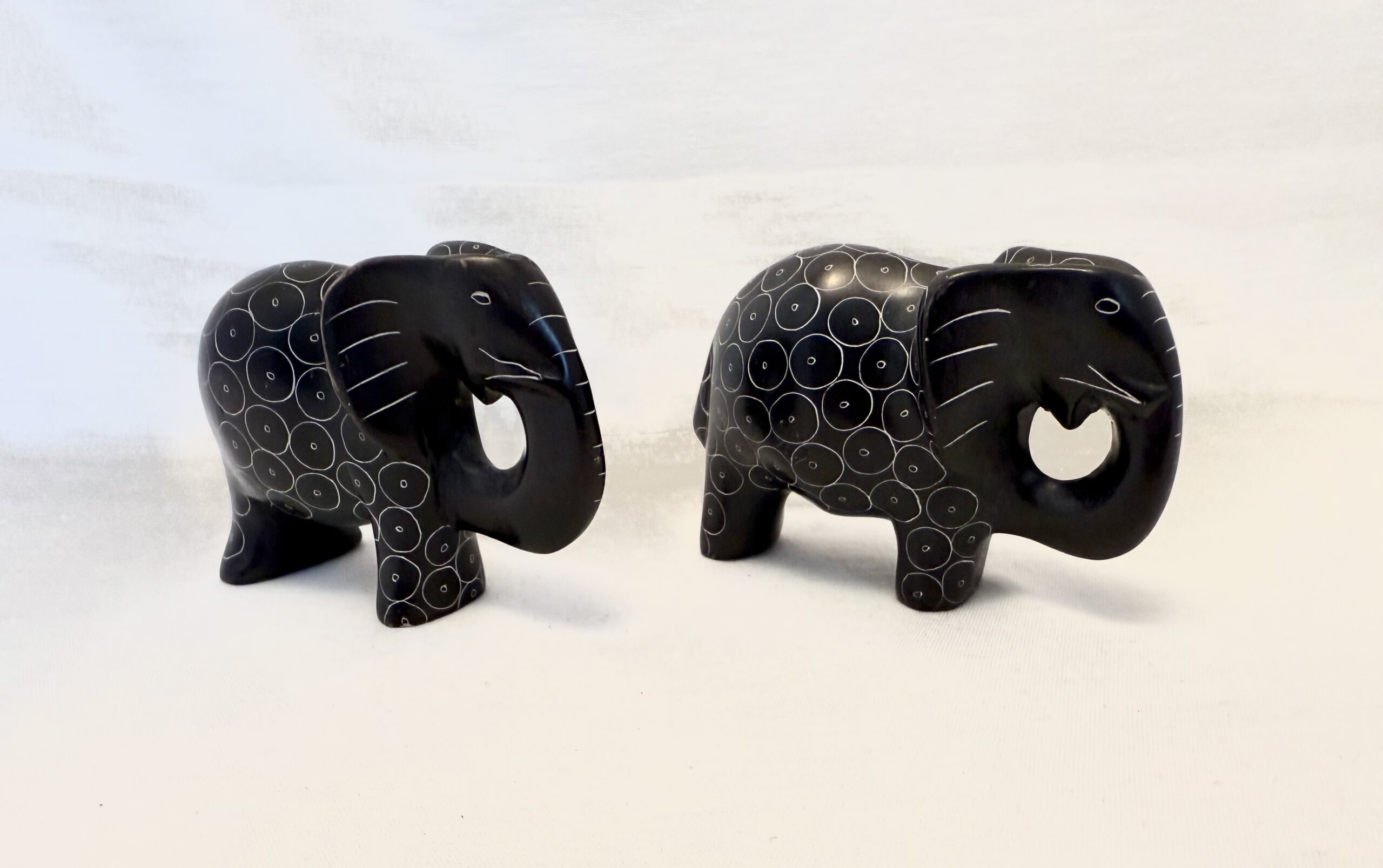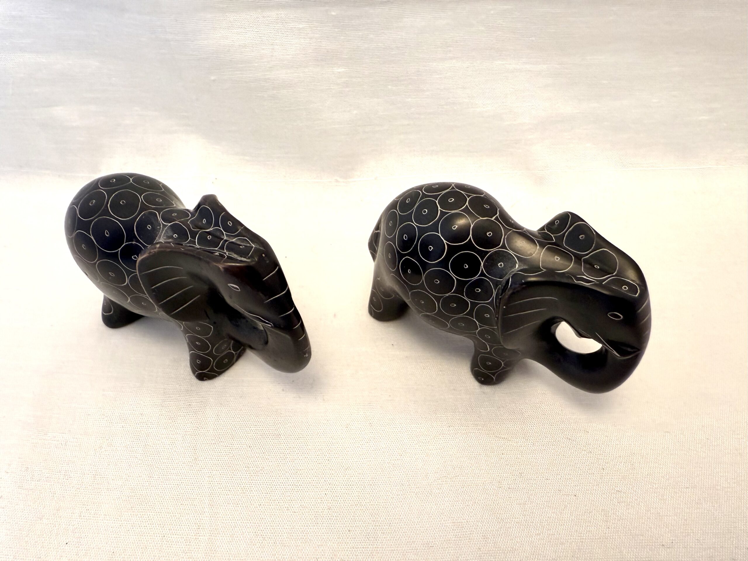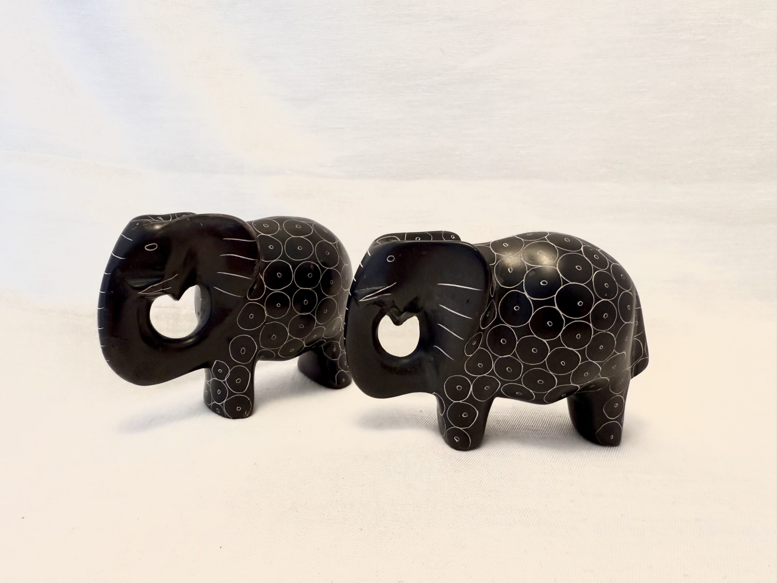 Sæt dekorative elefanter i sort tungt stenlign. materiale.