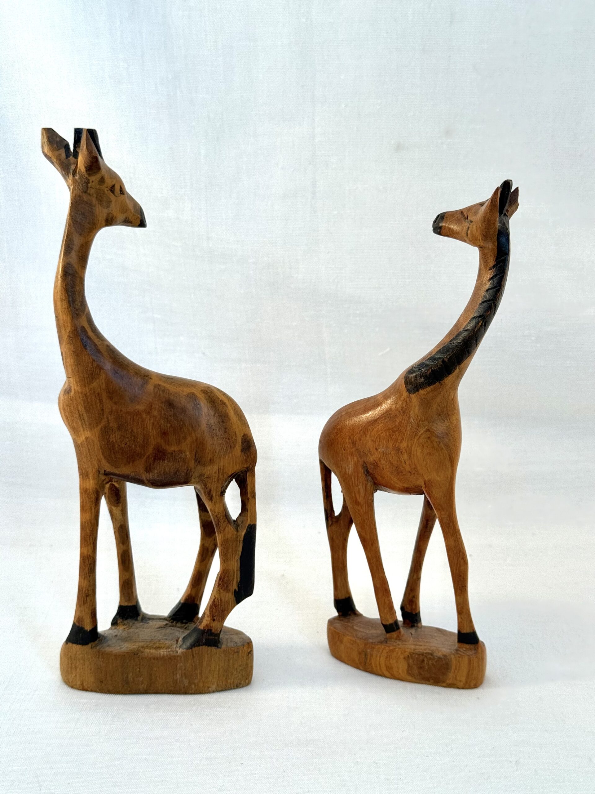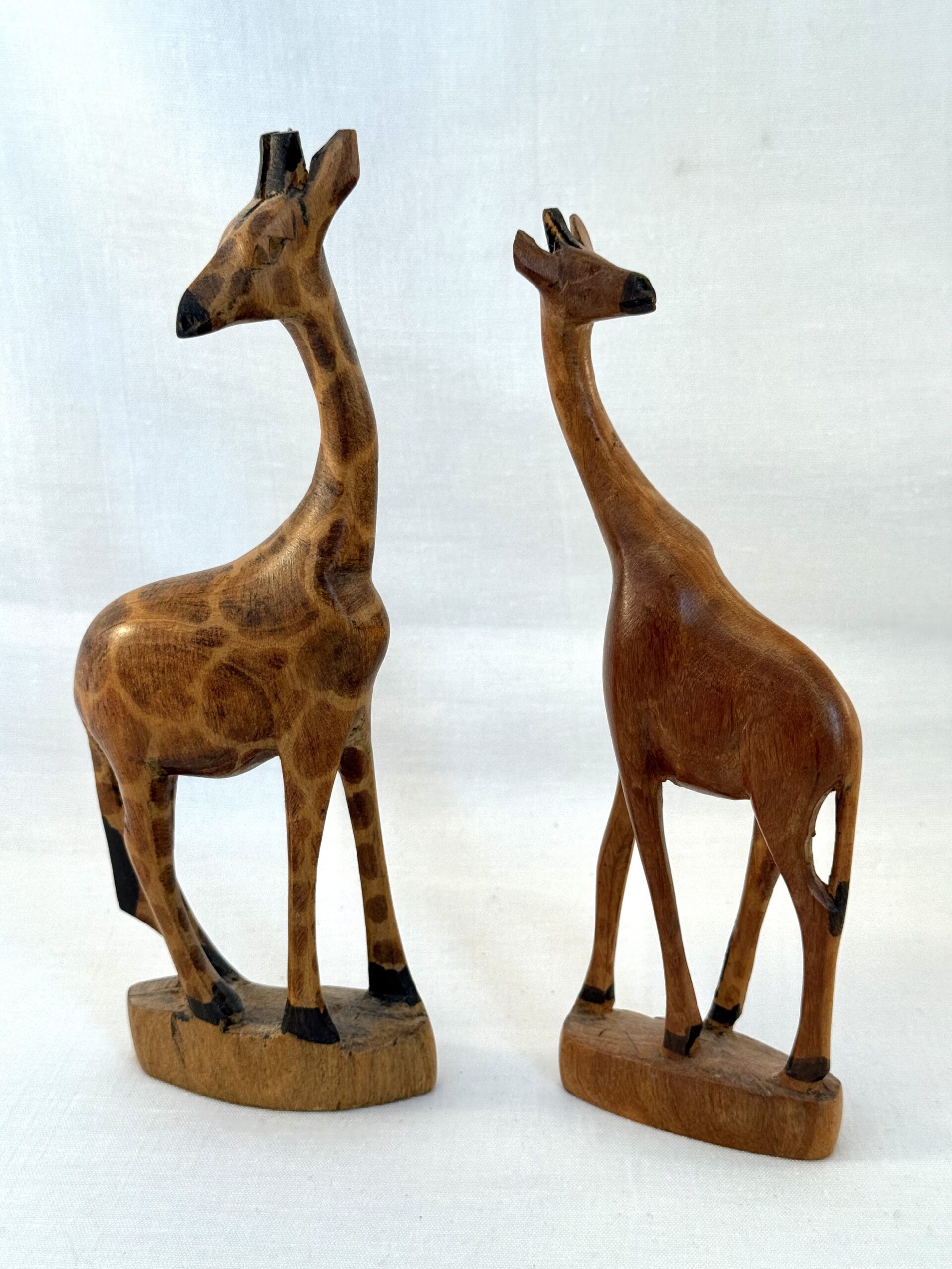 2 håndskårne træfigurer – giraffer.