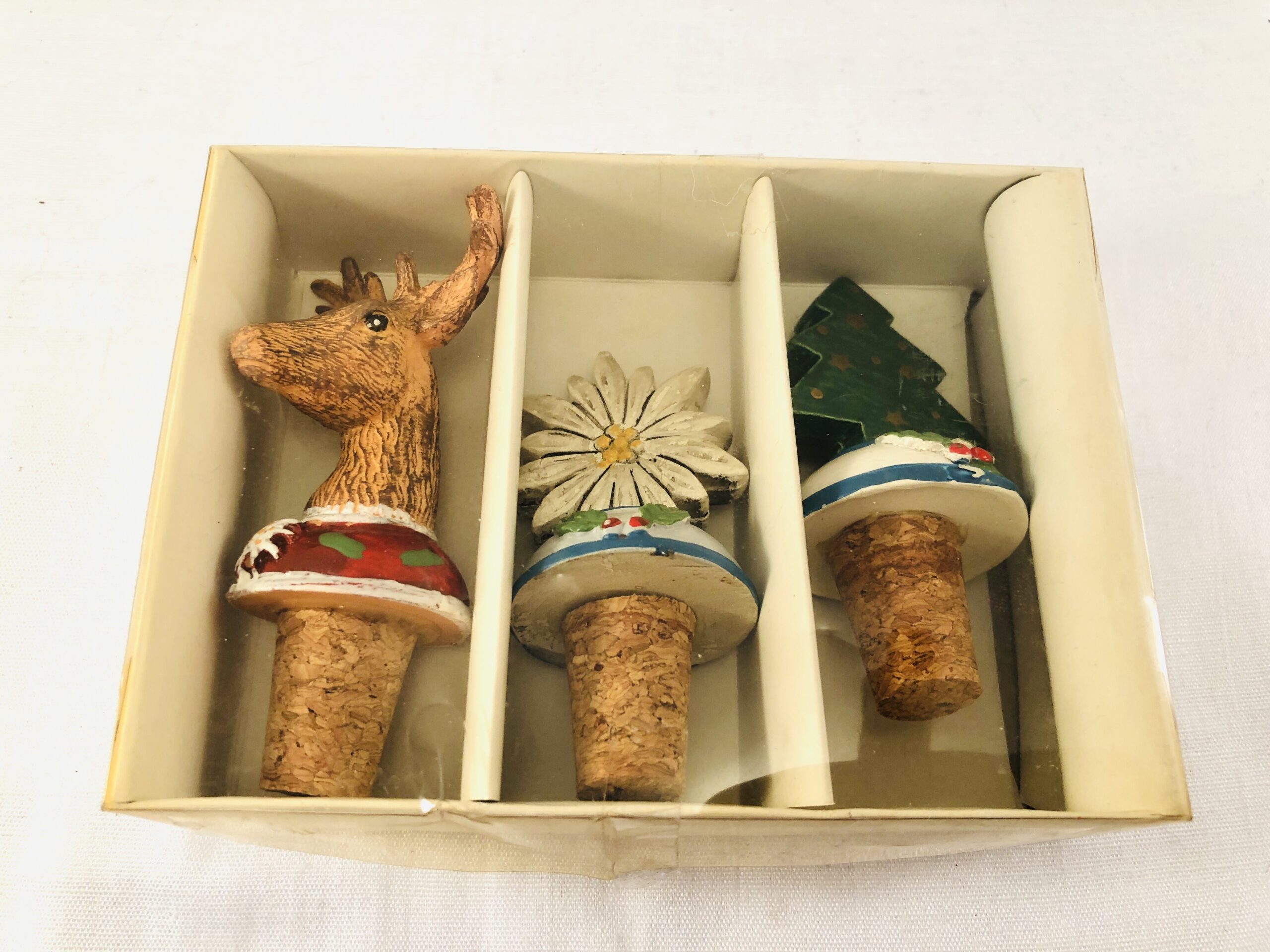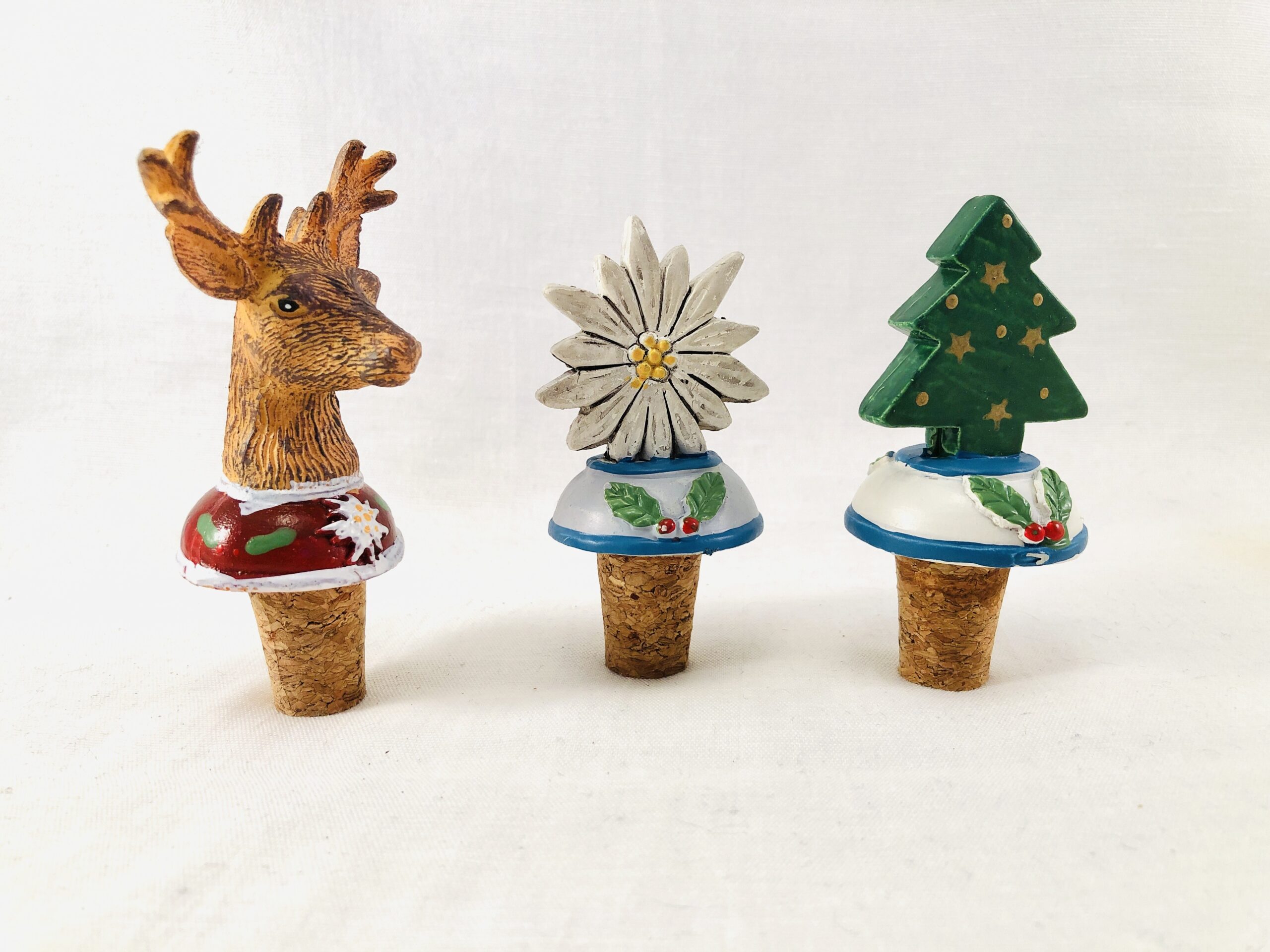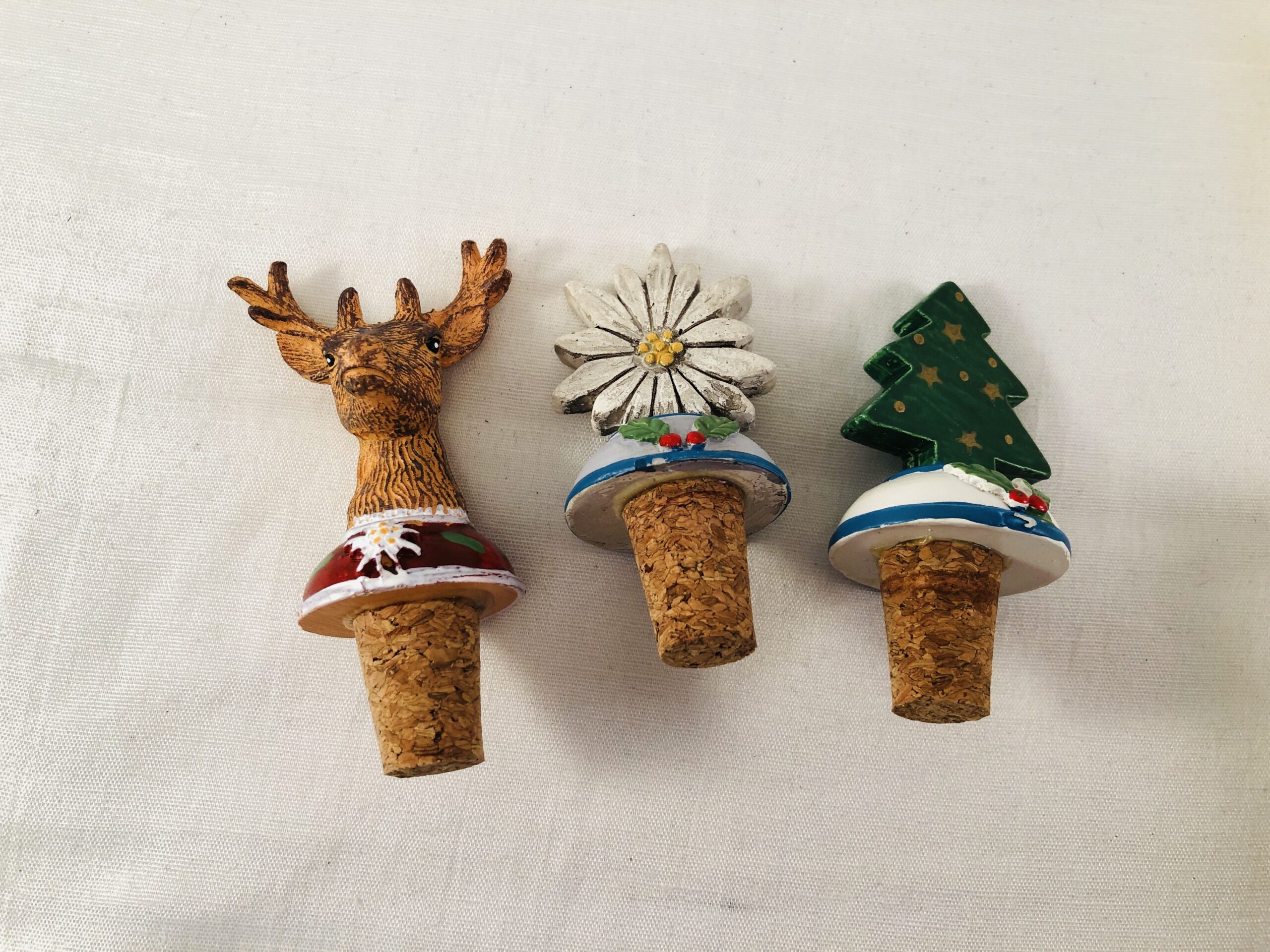 3 ubrugte vinpropper / propper / korkpropper med forskellige figurer.
