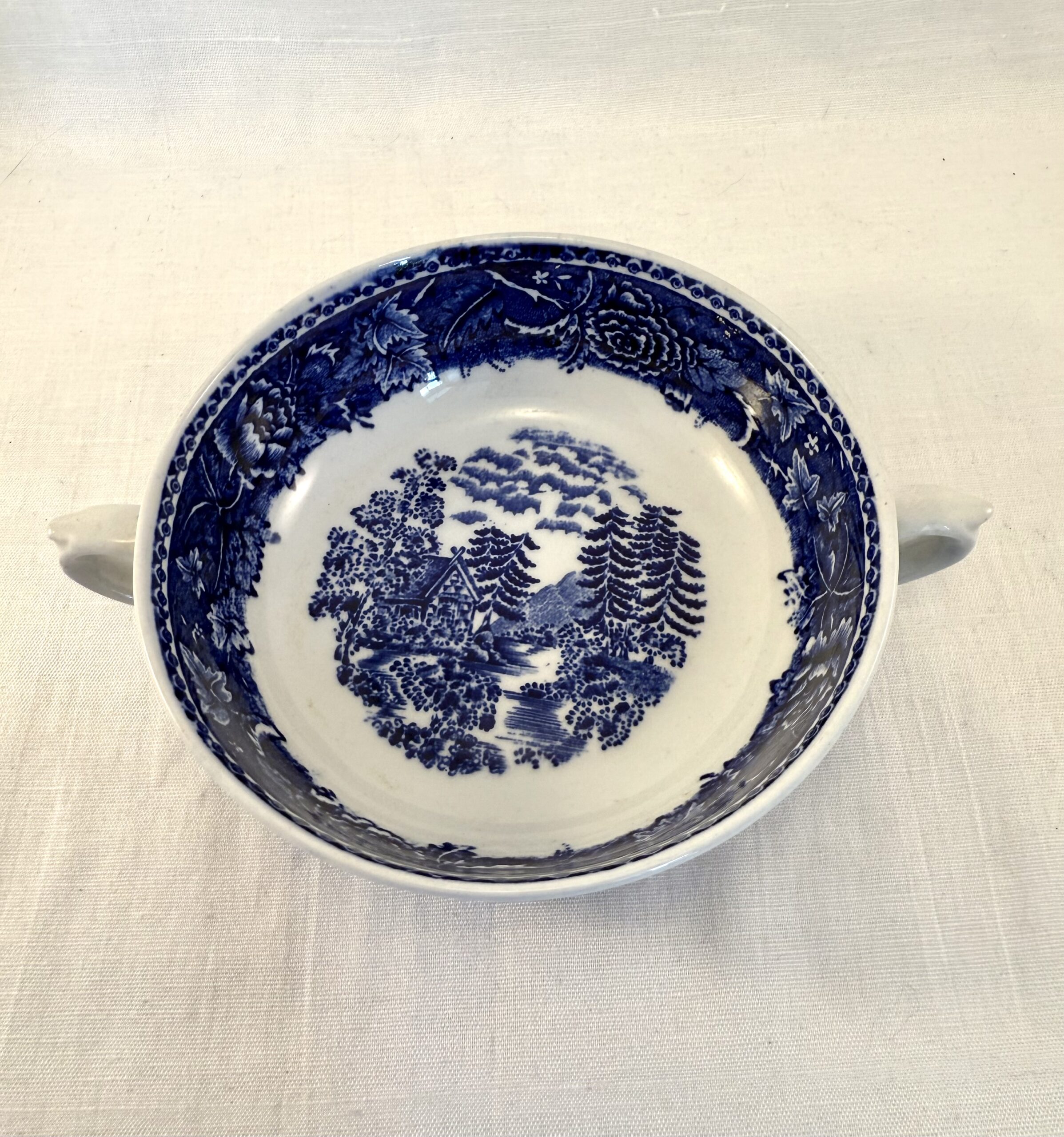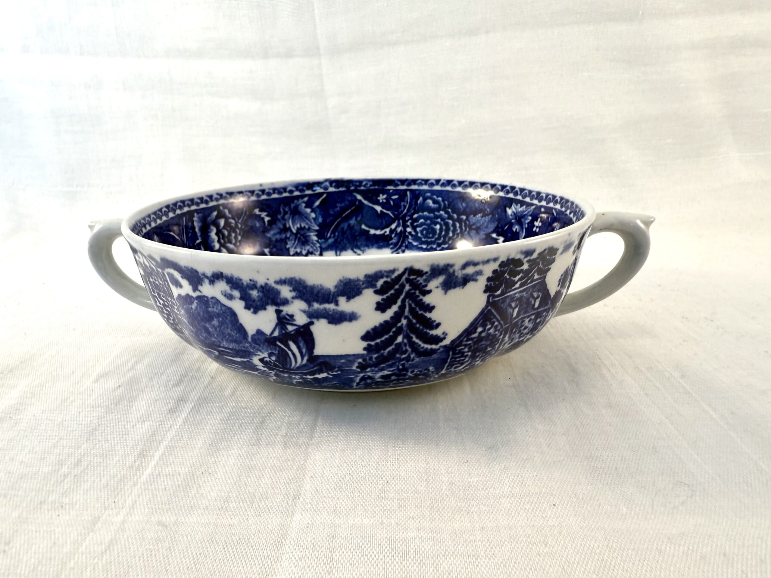 Dekorativ boullionkop / suppekop med flotte blå motiver.
