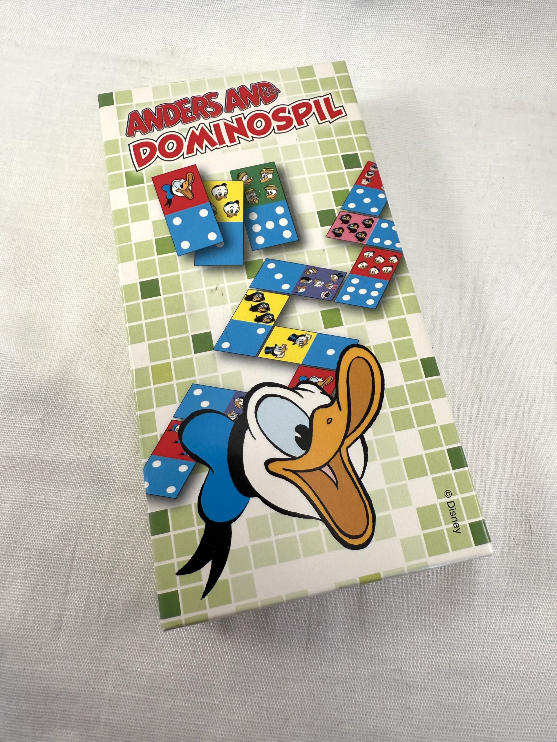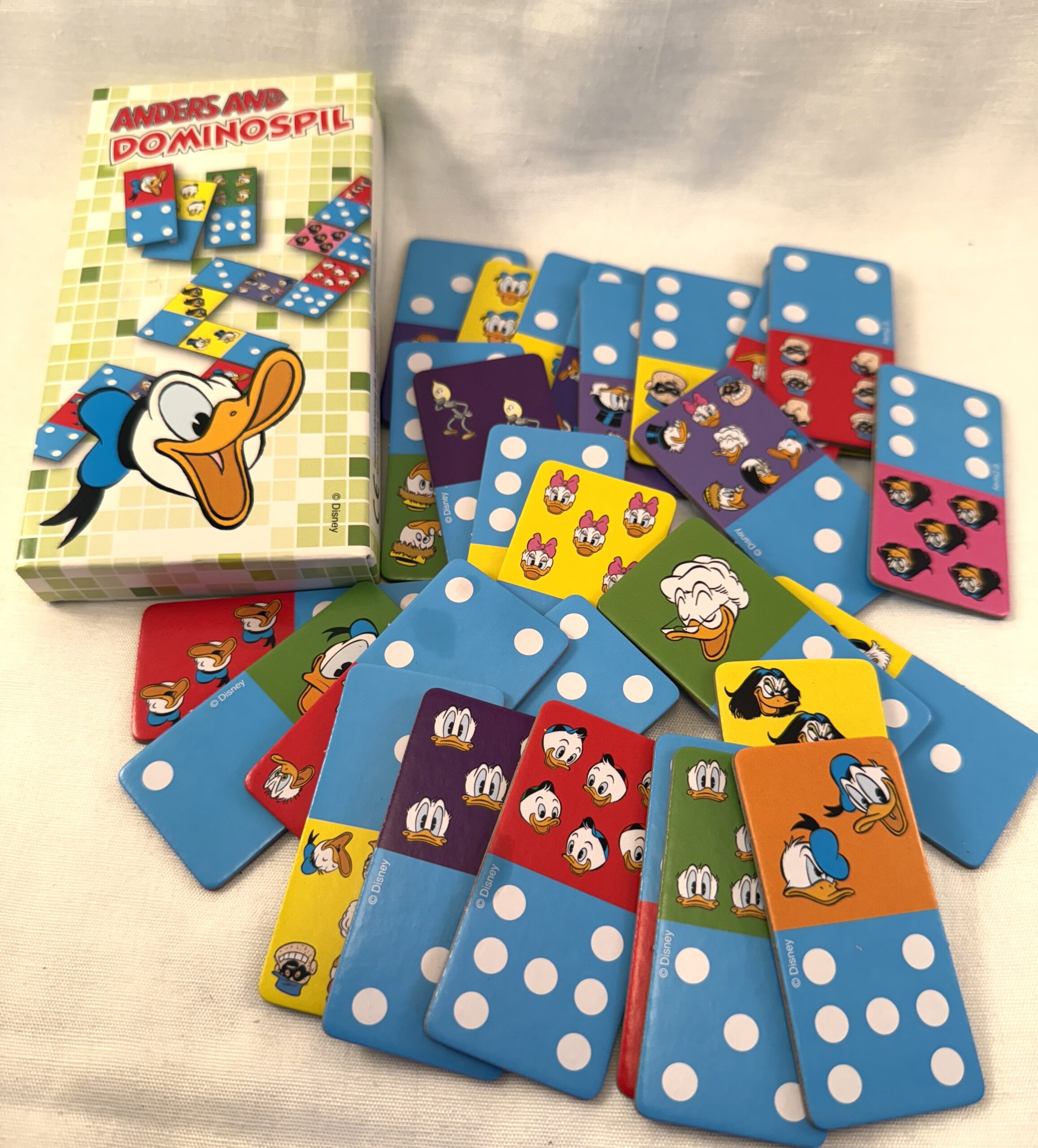 Klassisk dominospil med sjove Anders And-figurer på brikkerne.