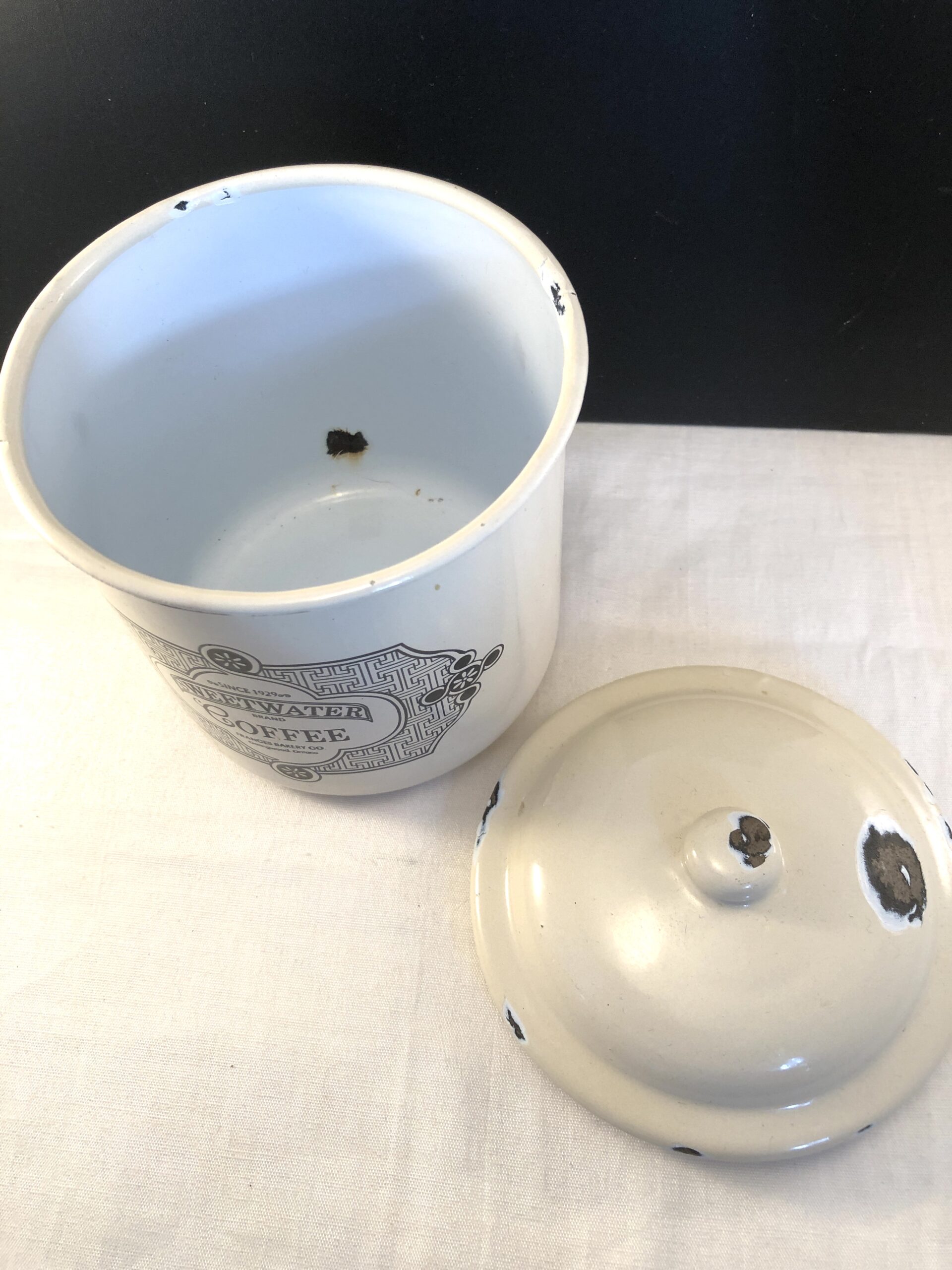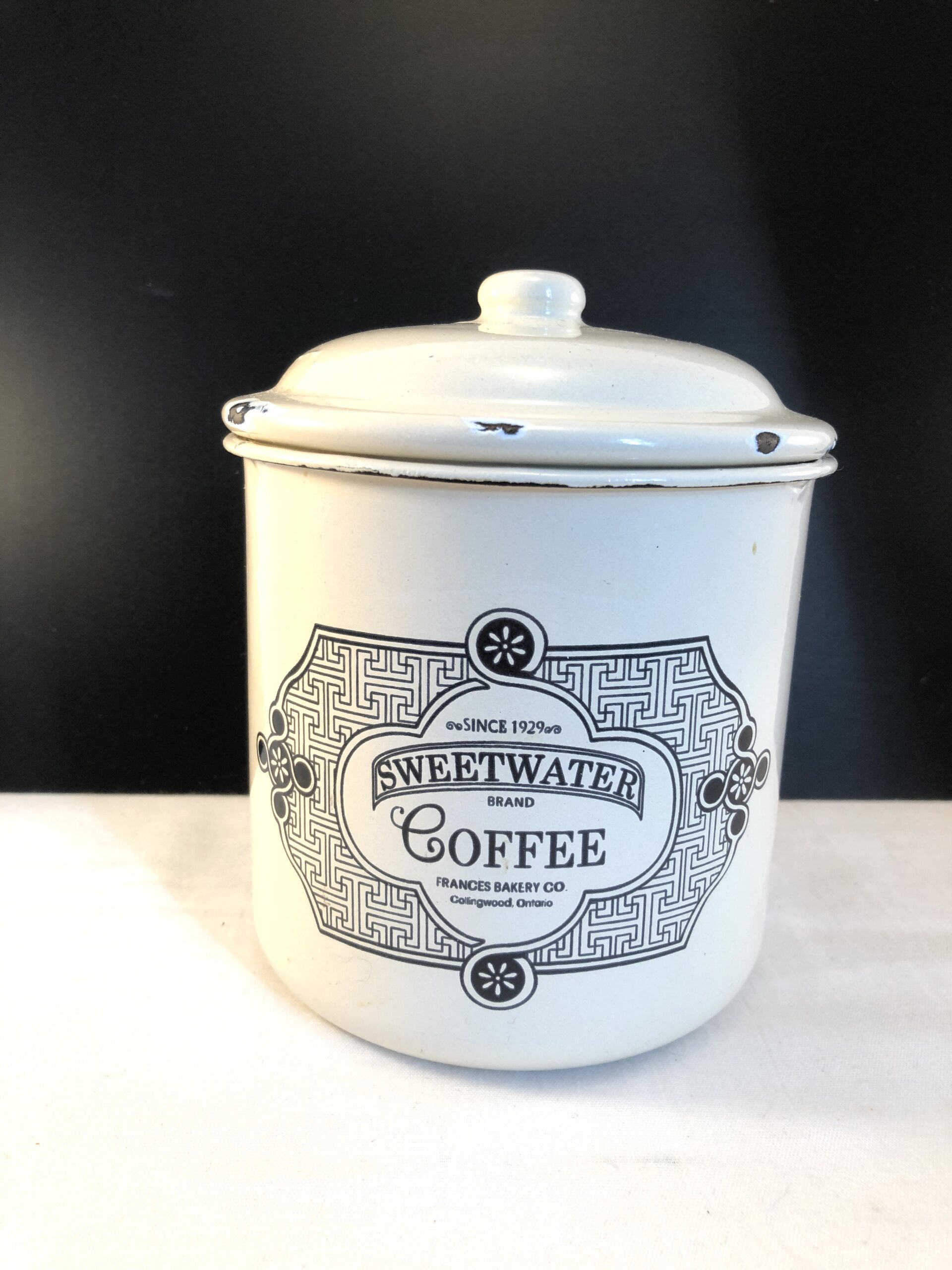 Emalje kaffedåse med låg.