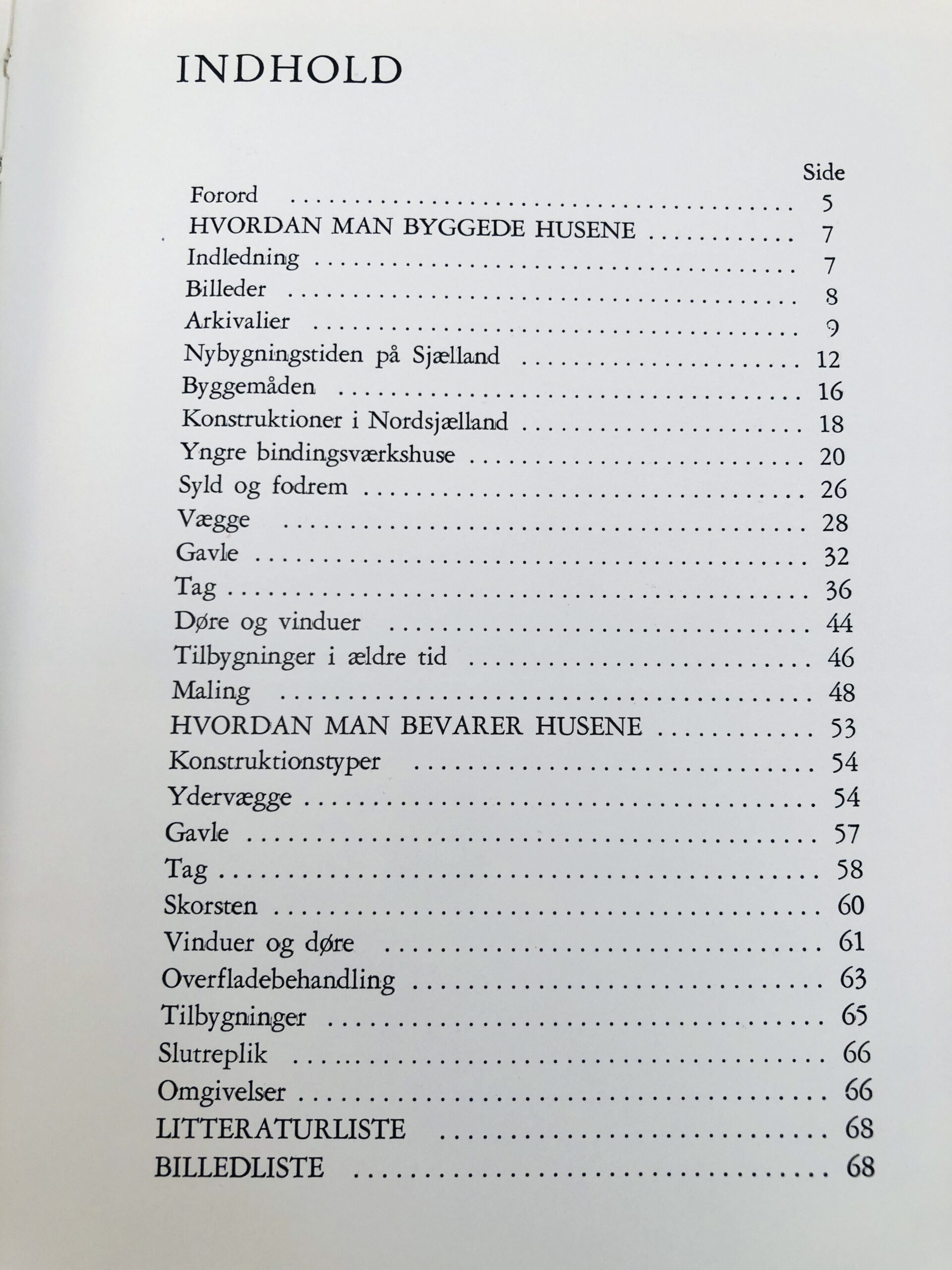 - Grundig og illustreret gennemgang af byggestil, konstruktion og bevaring af gamle sjællandske bindingsværkshuse.