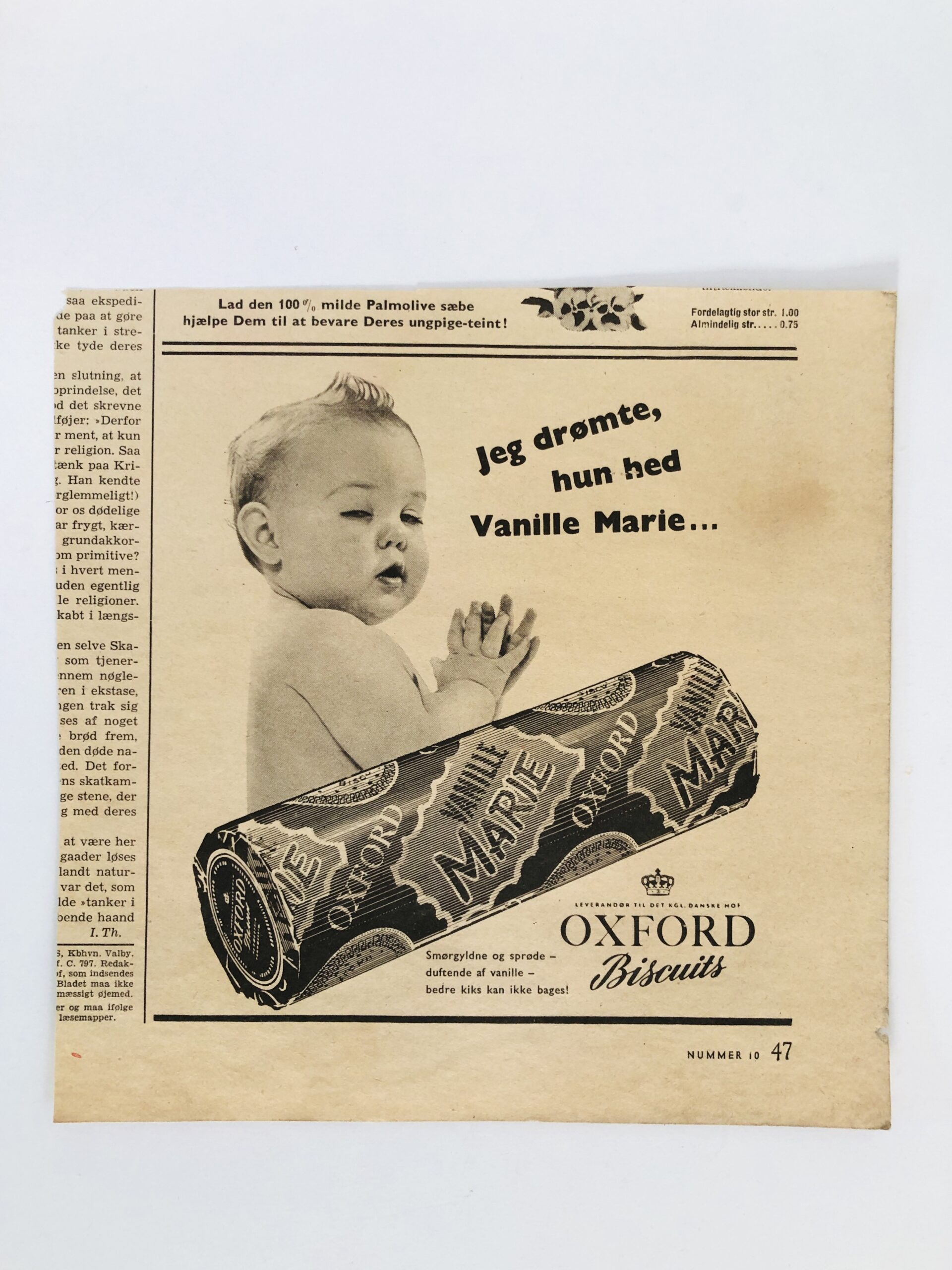 - Flot gammel Oxford Biscuits reklame fra Familie Journal 1954.