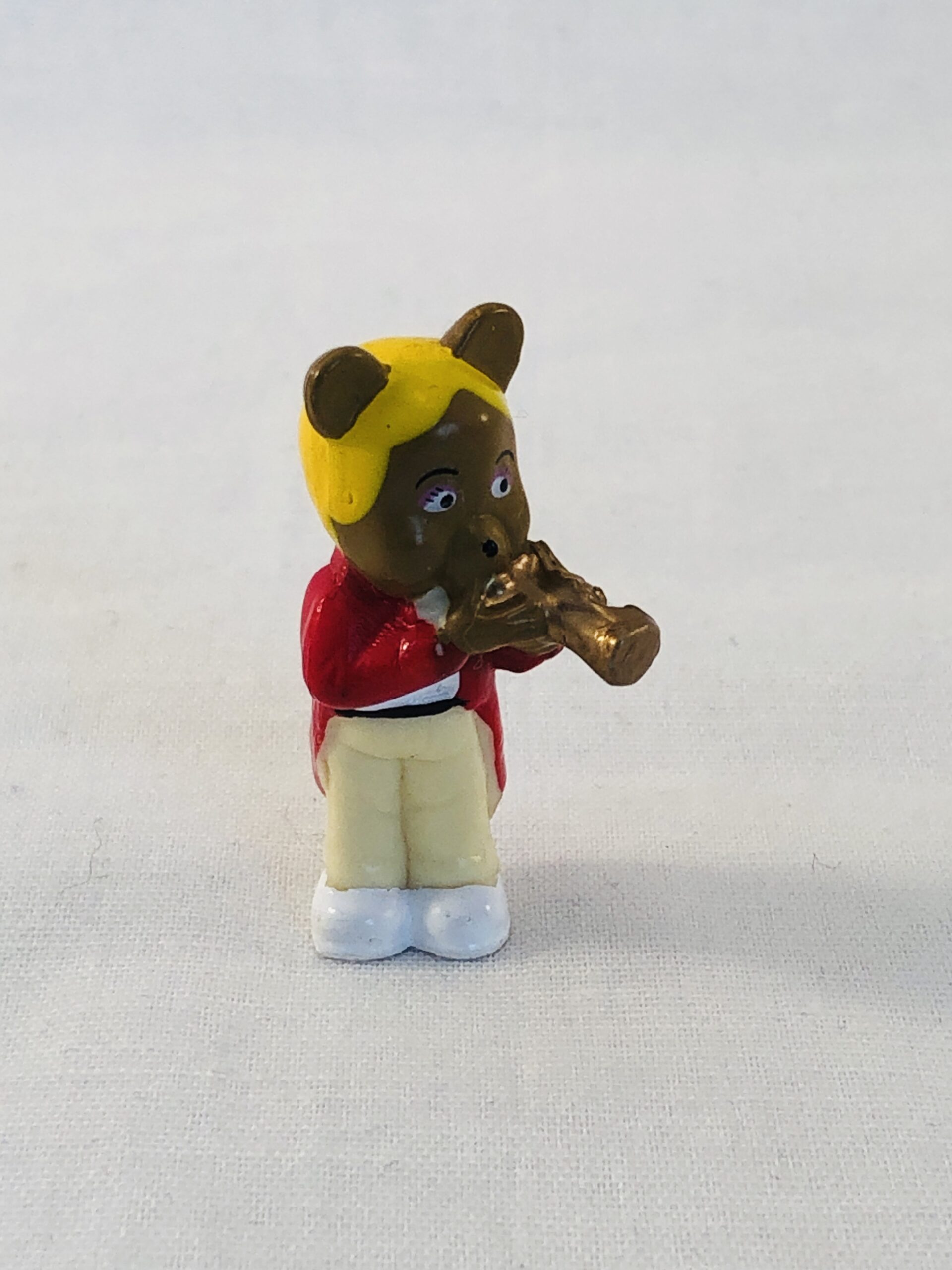 Miniature bamsefigur med trompet.