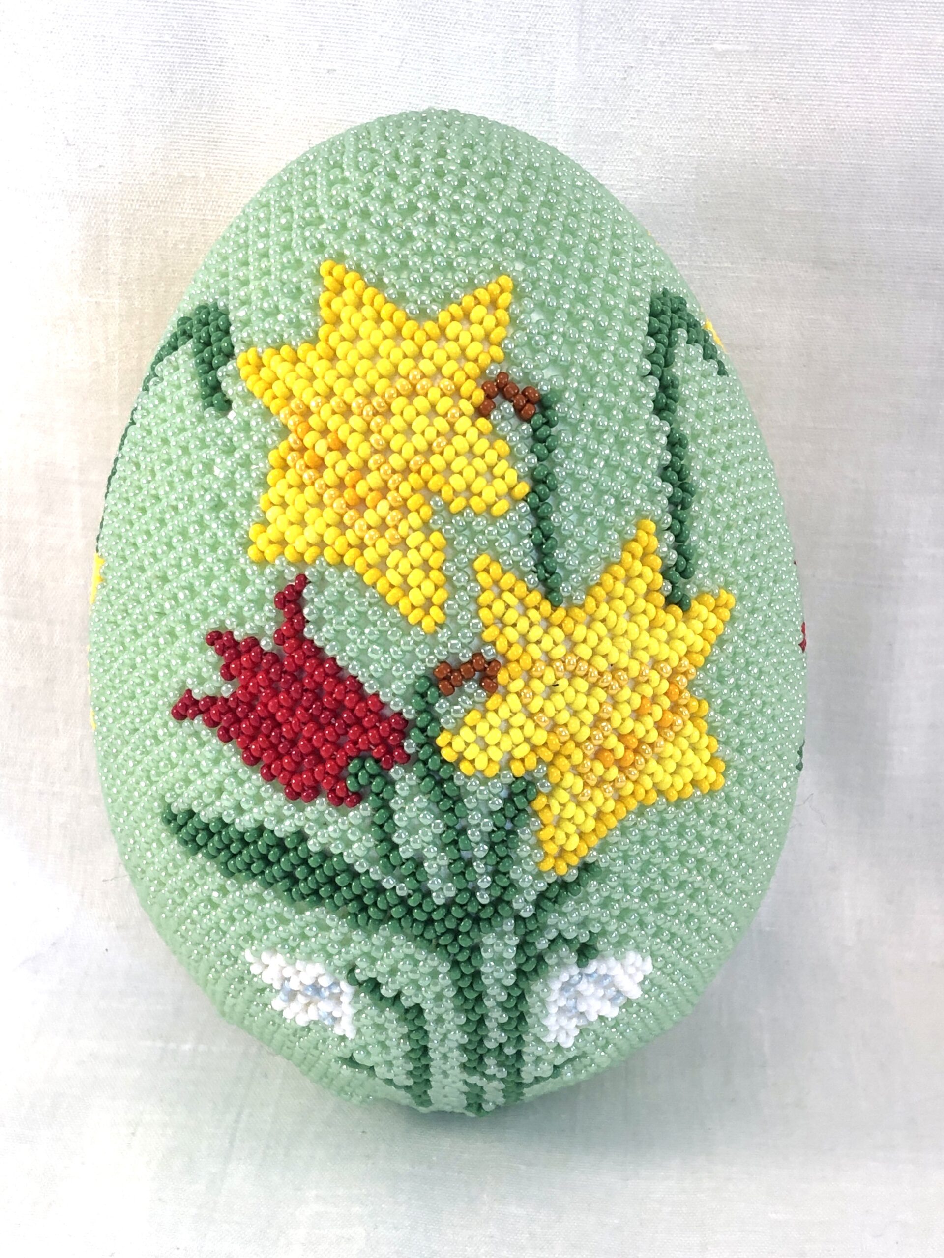 Stort flot påskeæg lavet af små perler.