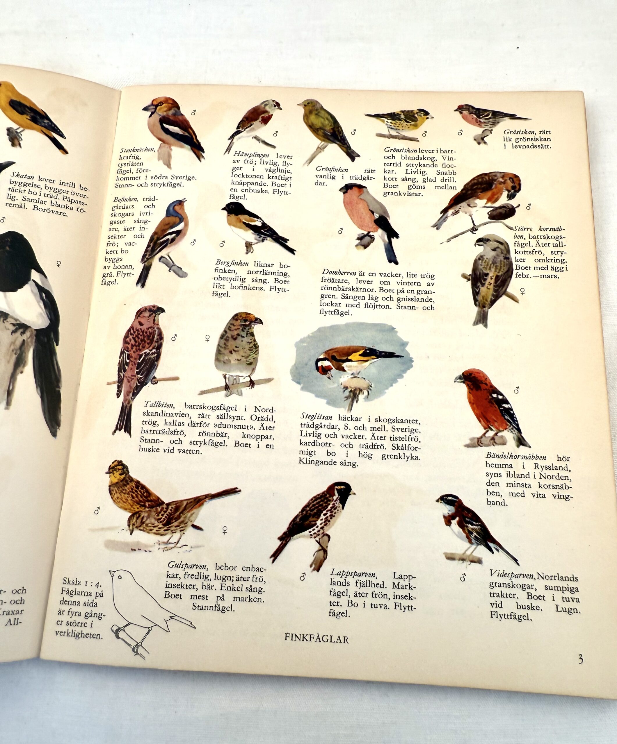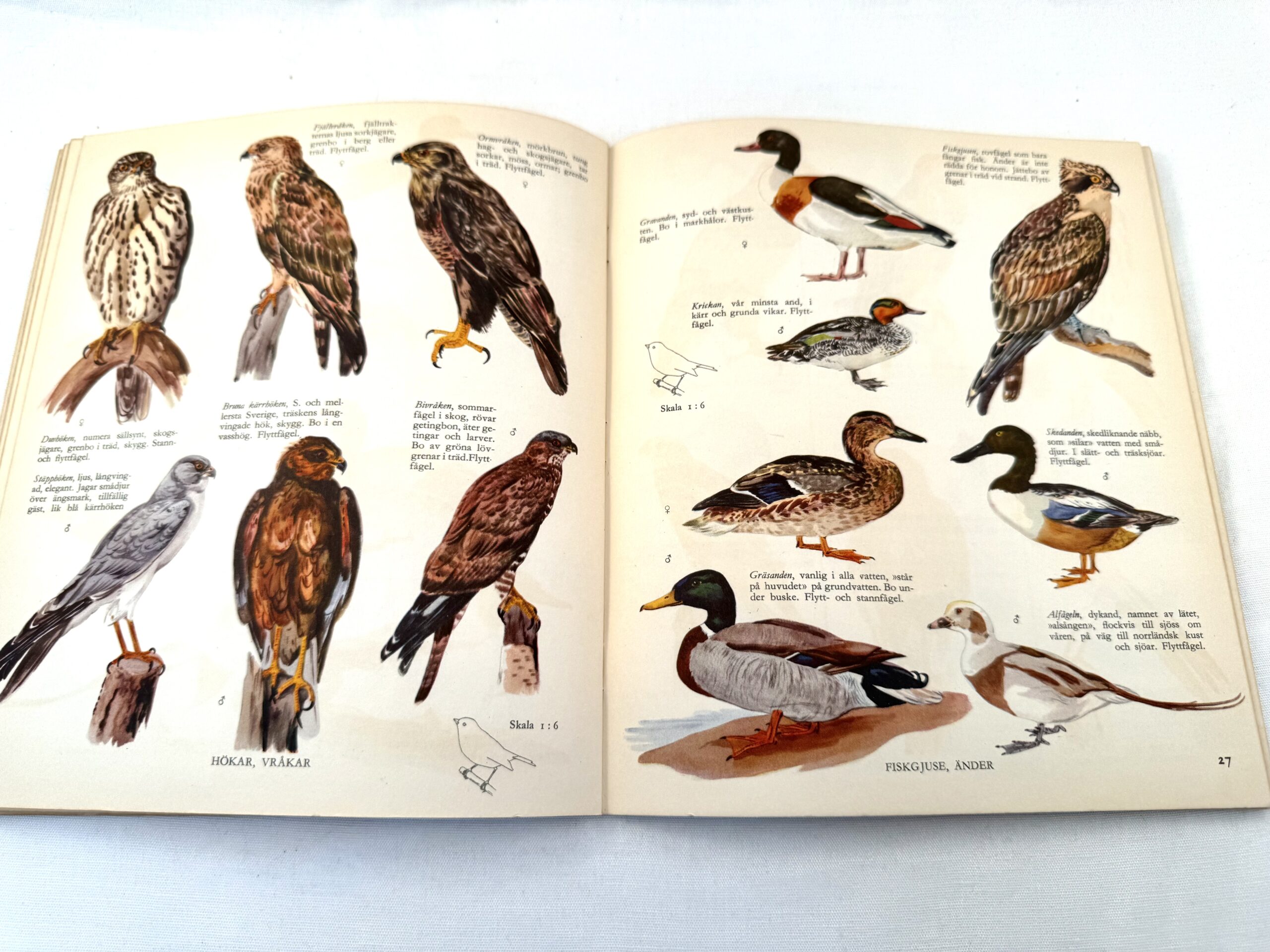 - Gammel Svensk fuglebog med smukke illustrationer af forskellige arter – fra småfugle til rovfugle og ænder.