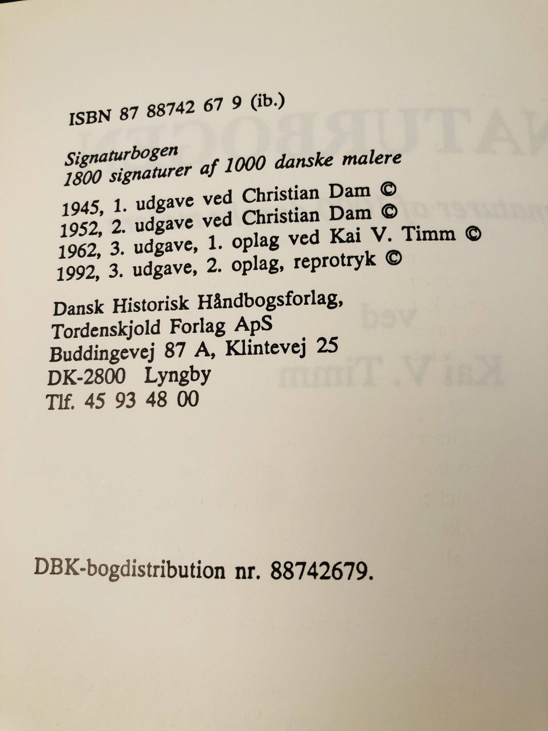 Kai V. Timm “Signaturbogen” med over 1000 danske malere.