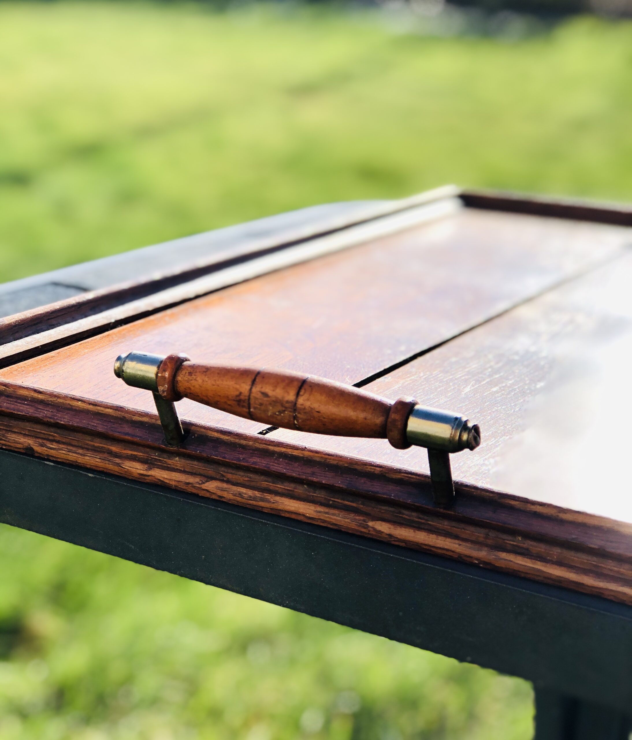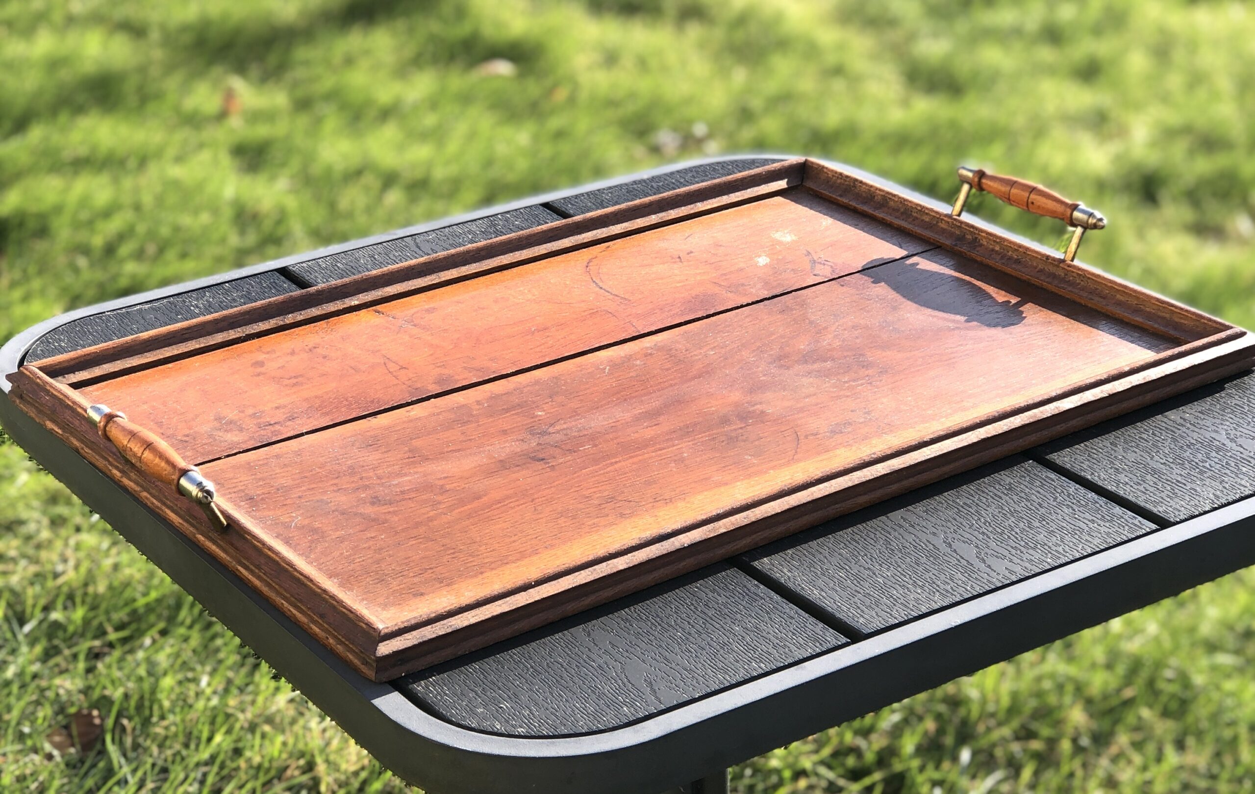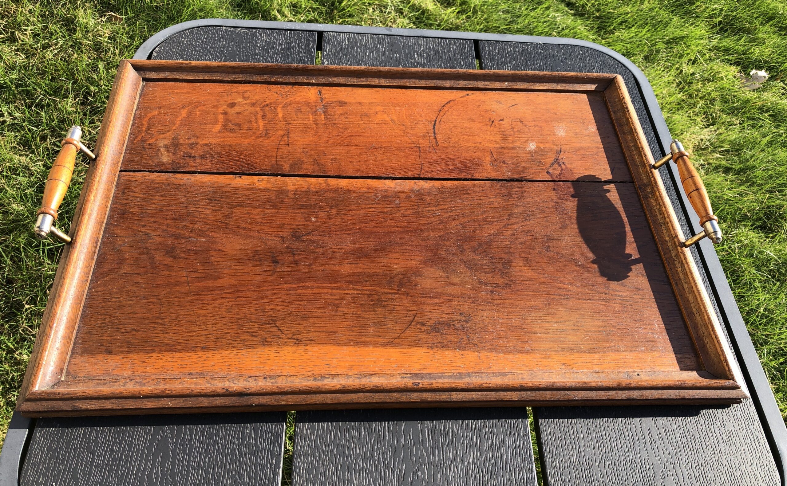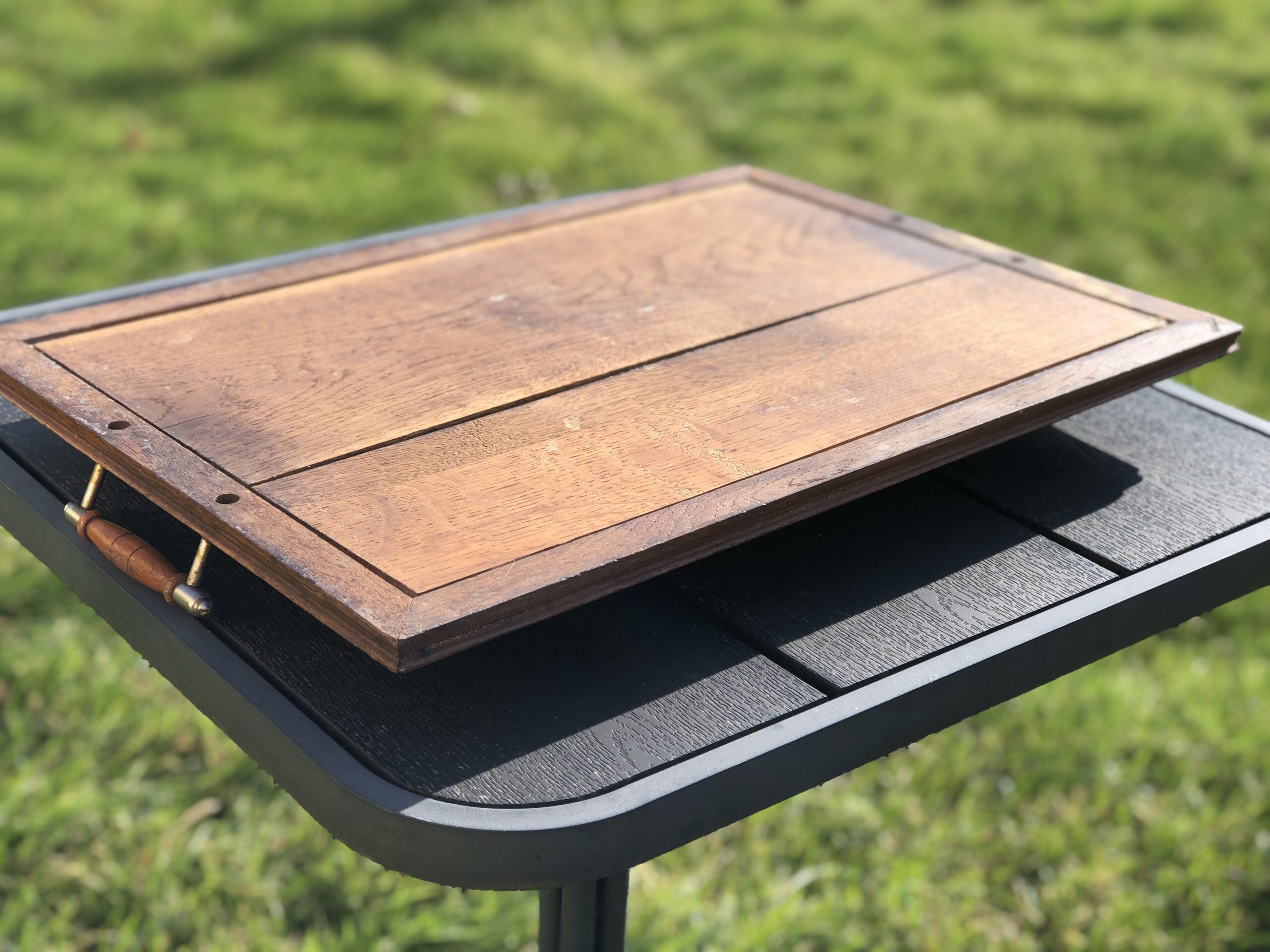 Stor serveringsbakke / bakke i træ og messing i grebene.