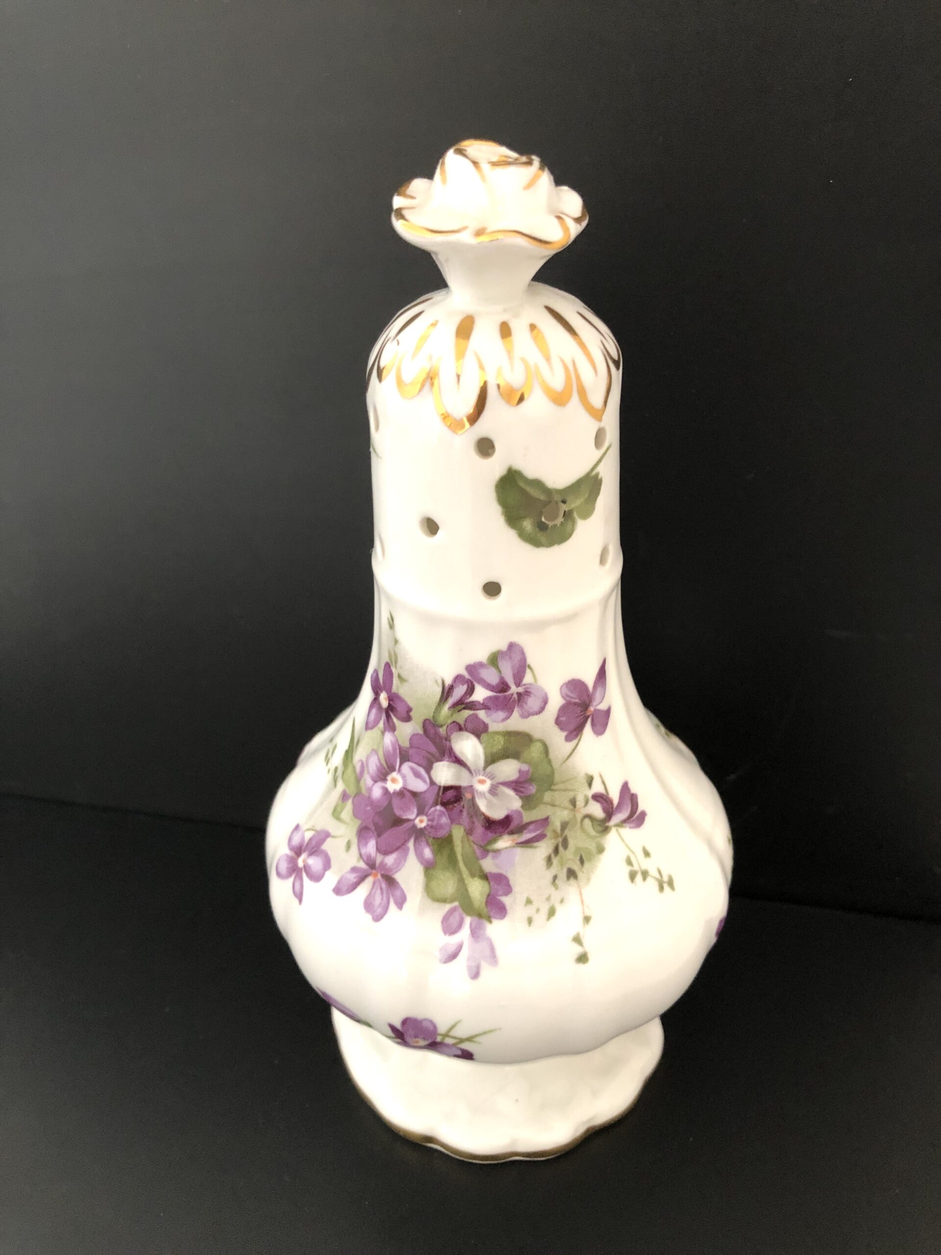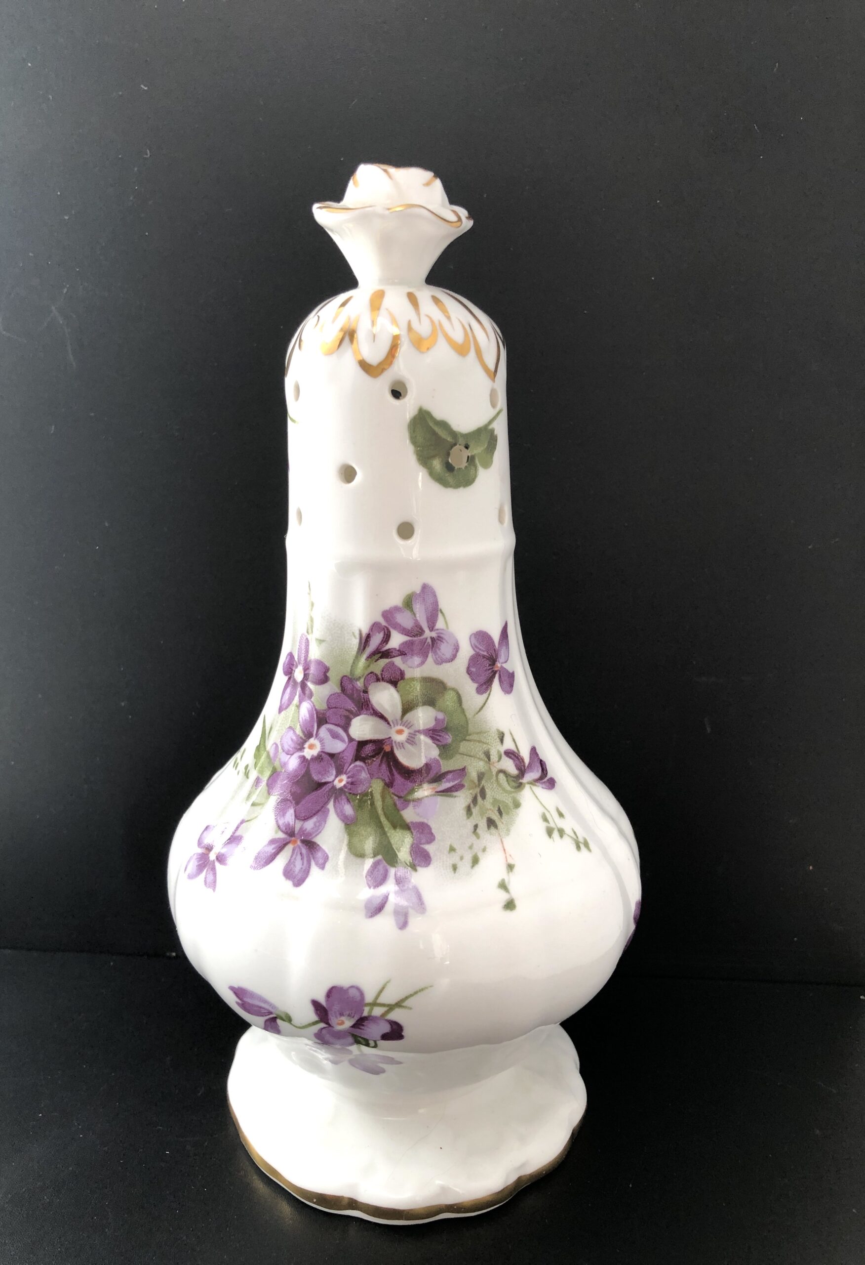 - Strøbøsse dekoreret med flotte violette blomster motiver.