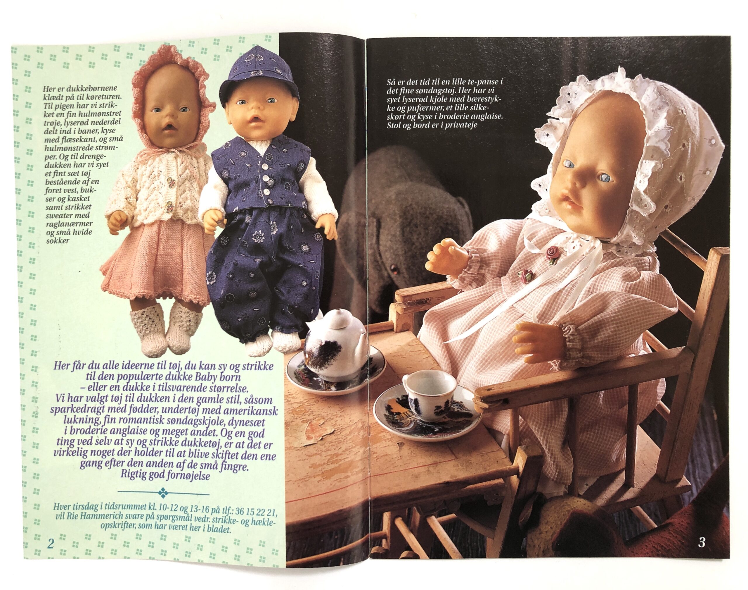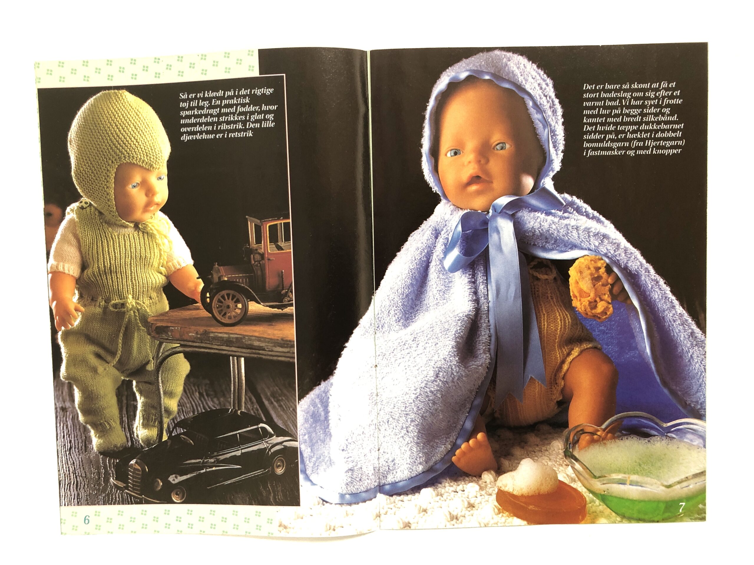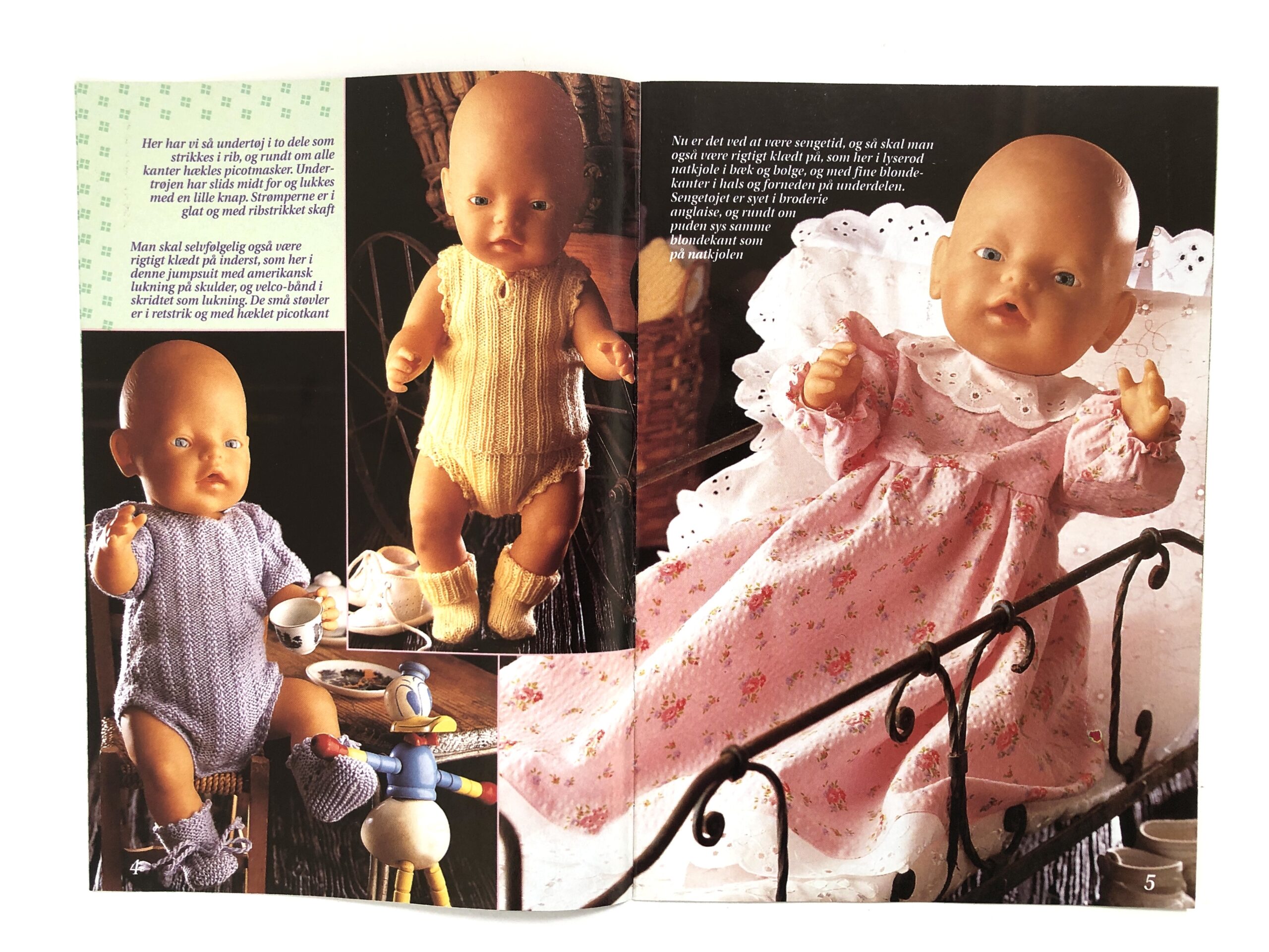 Med flere forskellige opskrifter/mønstre til dukken Baby born.