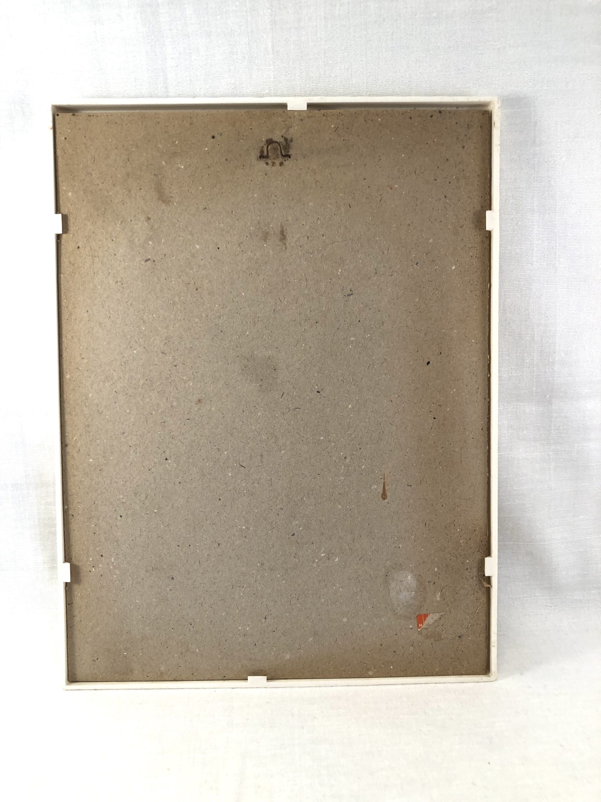 Billedet er indrammet i original plast-/akrylramme med dekorativ kant.